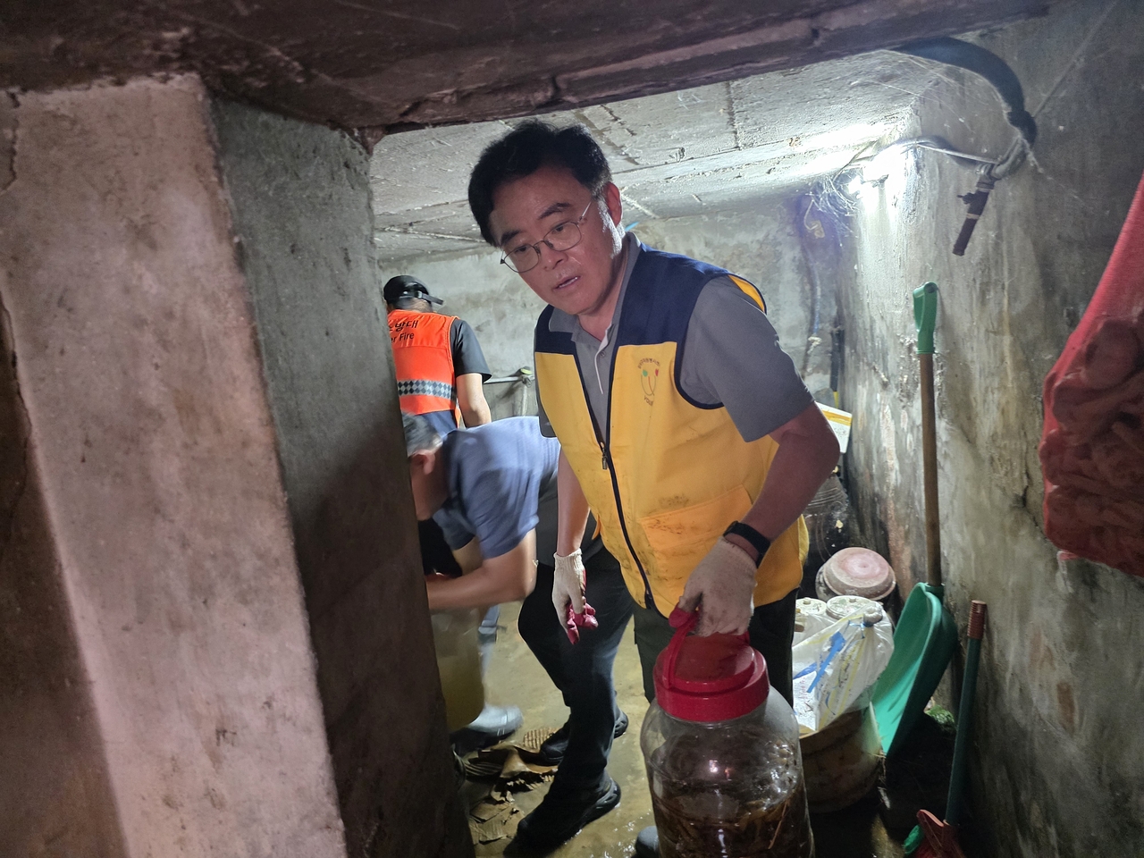 | 진교훈 강서구청장 수해 복구에 구슬땀을 흘리고 있다. |