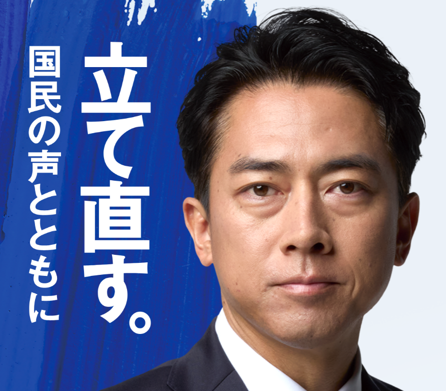 | 고이즈미 신지로 농림수산상의 선거 포스터와 ‘국민의 목소리와 함께 다시 바로 세운다’ 문구 [고이즈미 신지로 홈페이지 캡처] |