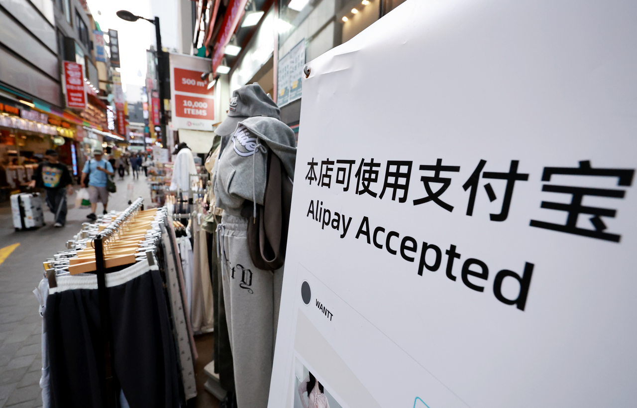 | 29일 서울 중구 명동 거리에 중국인 관광객들을 상대로 한 간편결제 수단 등 홍보 배너가 설치돼 있다. [연합] |