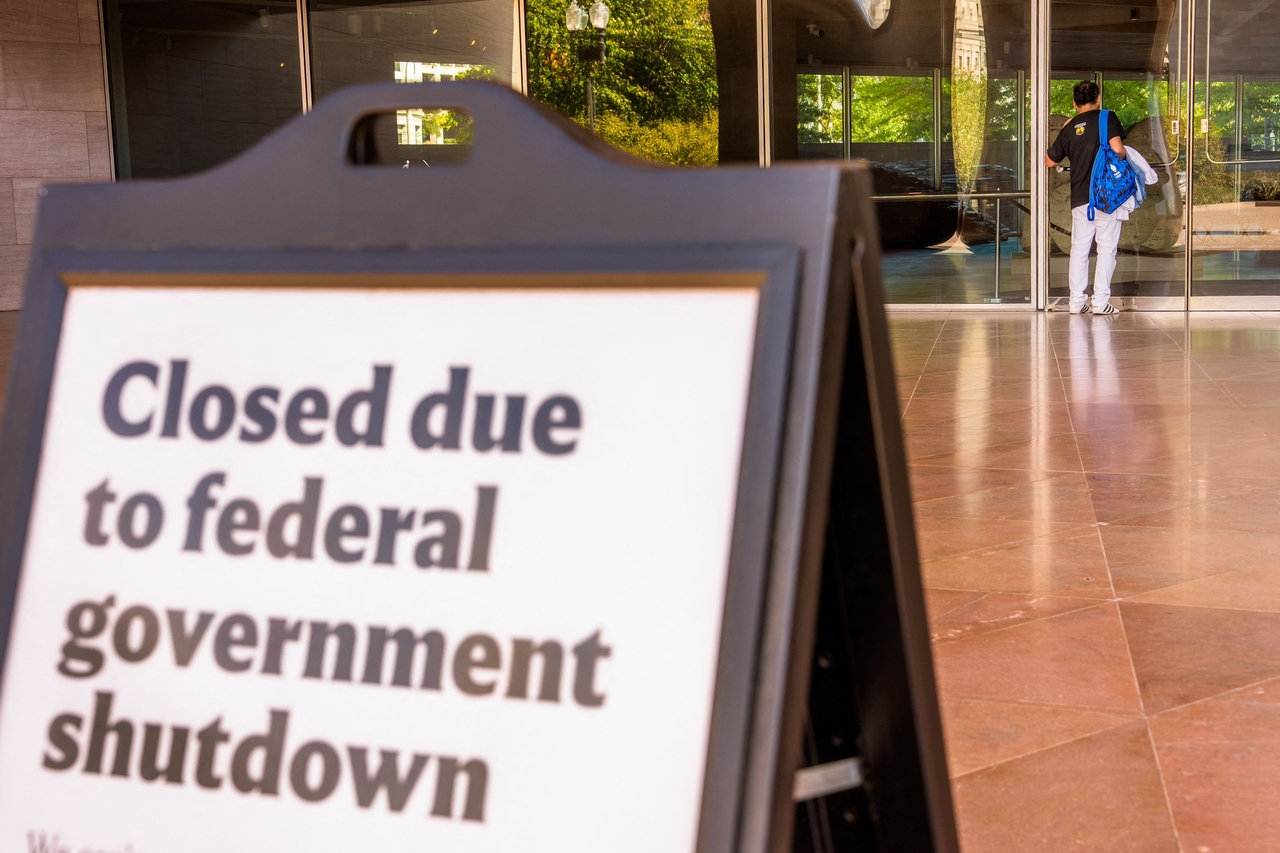 | 6일(현지시간) 미국 연방정부 셧다운(일시적 업무 정지)으로 휴관한 워싱턴 DC 국립 미술관 앞에 한 남성이 서 있다. [AFP] |
