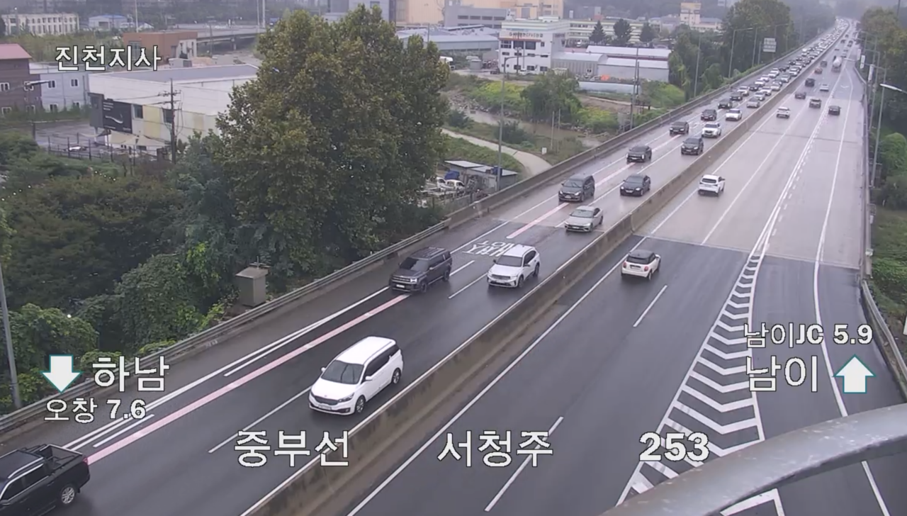 | 중부고속도로 하남방향 서청주 부근 실시간 CCTV 화면 [한국도로공사 홈페이지 캡처] |