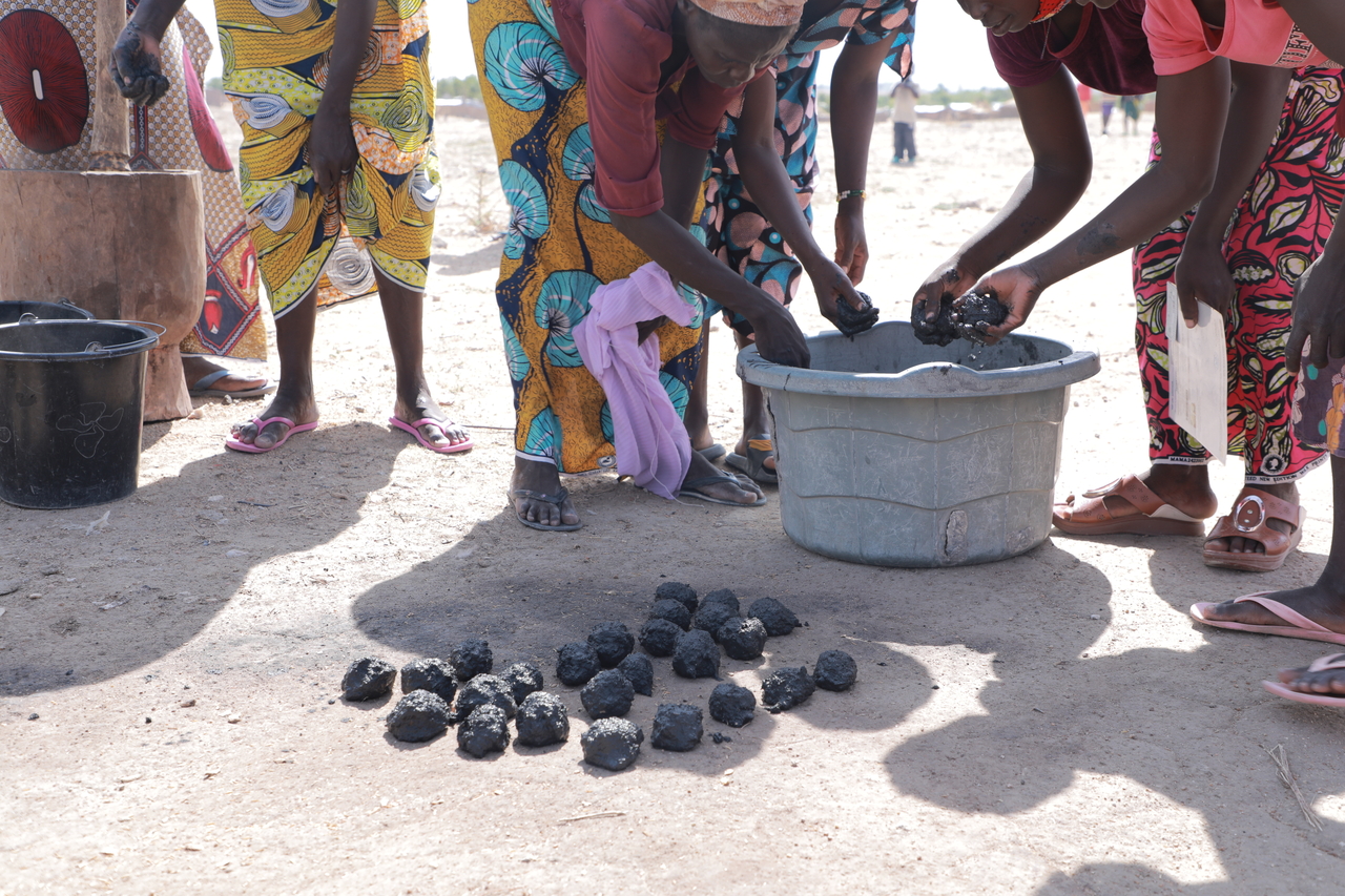 | 지난 11일(현지시간) 카메룬 최북단주 마요차나가 지역에 있는 미나와오 난민캠프 친환경 숯 생산 현장. 난민들이 쌀겨와 땅콩 껍질 등을 이용해 친환경 숯을 만들고 있다. <연합뉴스> |