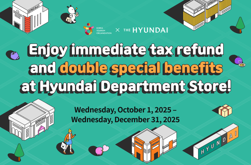 | 한국관광공사-현대백화점, 부가세 즉시환급 서비스 활성화 공동 프로모션 영어 안내 포스터 |