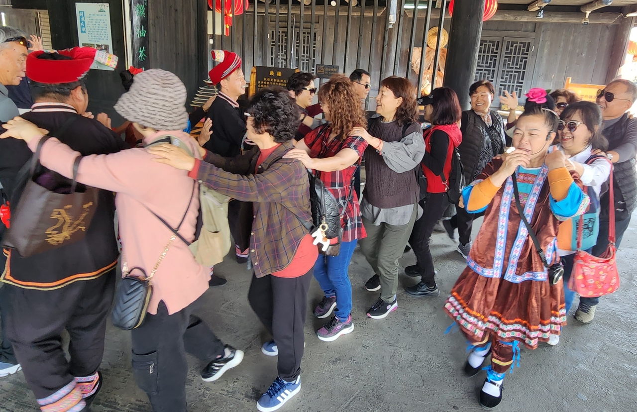 | 현지주민의 민속놀이중 강강수월래 칙칙폭폭 놀이 |