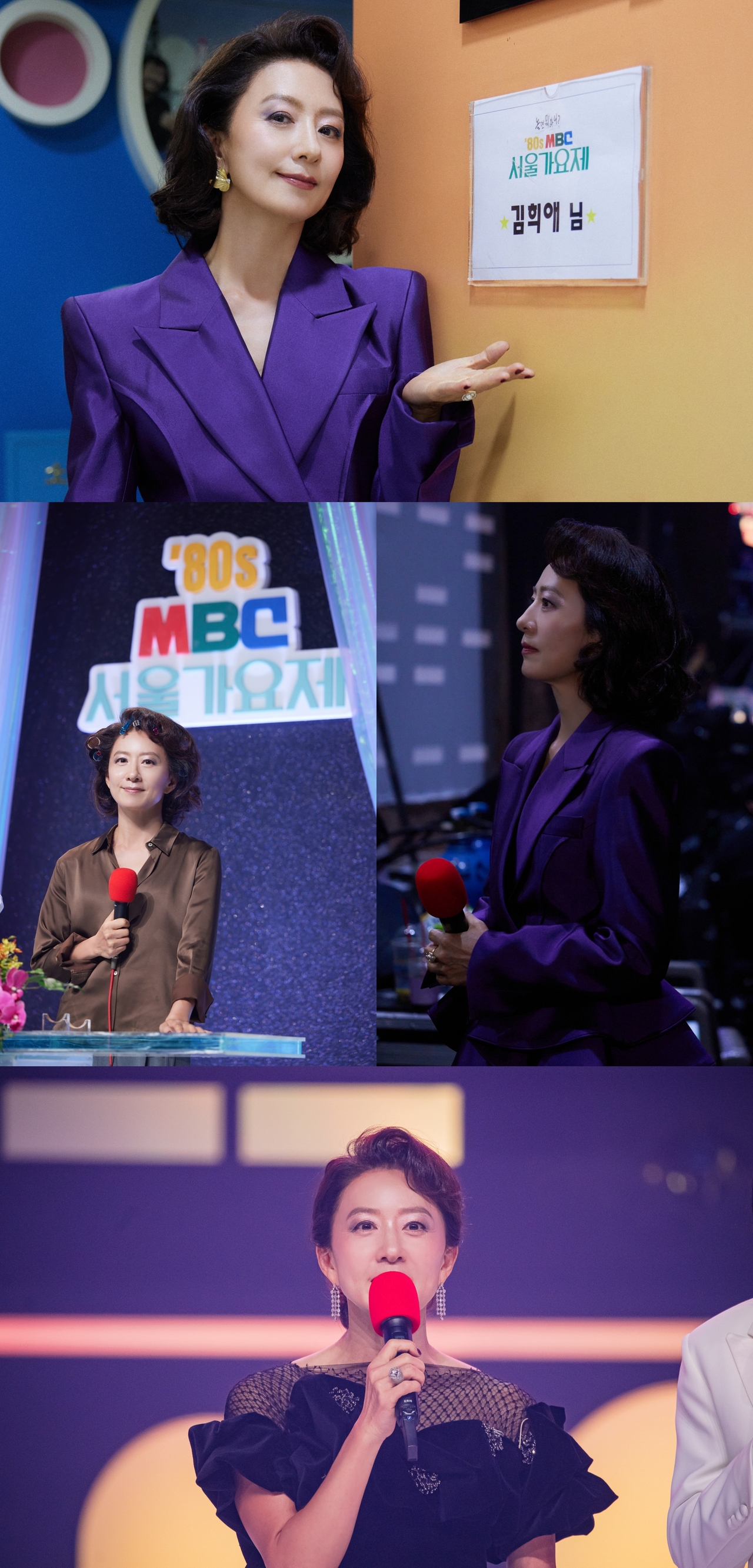 김희애는 9월 27일과 10월 4일 2주에 걸쳐 방송된 MBC 예능프로그램 ‘놀면 뭐하니?’의 ‘80s 서울가요제’에서 유재석과 함께 진행자로 나서며 세대를 아우르는 클래식 아이콘다운 면모를 보여줬다. 80년대 음악 프로그램 MC시절을 떠올리게 하는 김희애의 등장은 시청자들에게 완벽한 타임슬립을 선사했다.