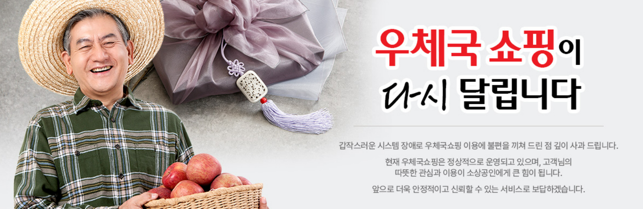 [헤럴드경제=한영대 기자] 과학기술정보통신부 우정사업본부는 국가정보자원관리원(국정자원) 화재 여파로 중단됐던 우체국 쇼핑몰이 9일 오후 4시부터 운영된다고 이날 밝혔다.