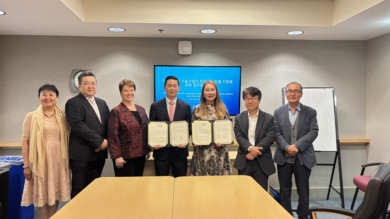 [헤럴드경제=천예선 기자] 대전광역시 북미통상사무소(DGBC)는 미국 워싱턴DC에 위치한 솔리드스테이트로펌(SSL)과 대전시 소재 기술기업의 북미시장 진출 및 현지 법인화 지원을 위한 업무협약(MOU)을 체결했다고 10일(현지시간) 밝혔다.