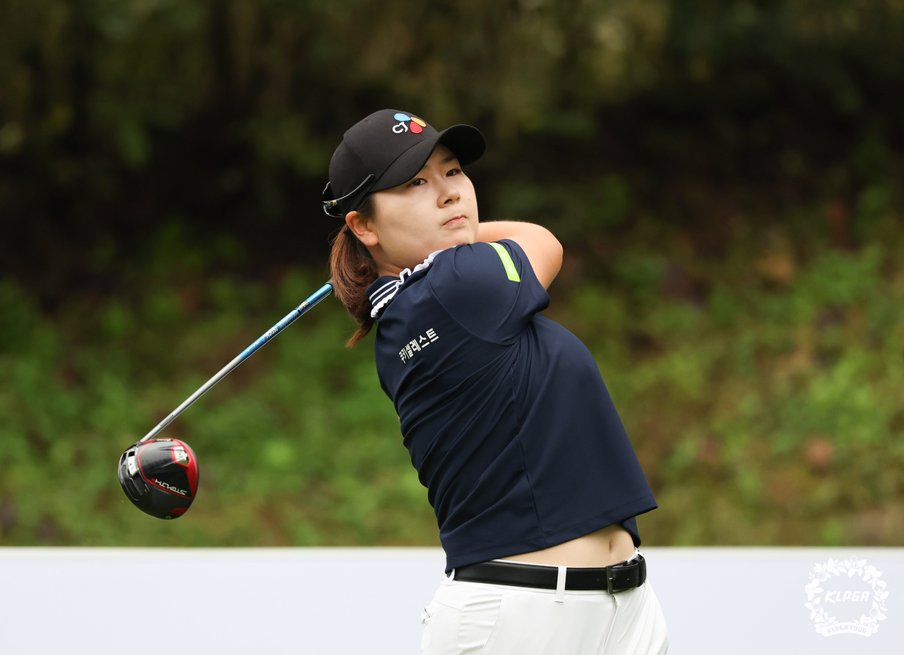 | 최종라운드 도중 2번 홀서 드라이버 샷을 날리고 있는 홍정민. [사진=KLPGA] |