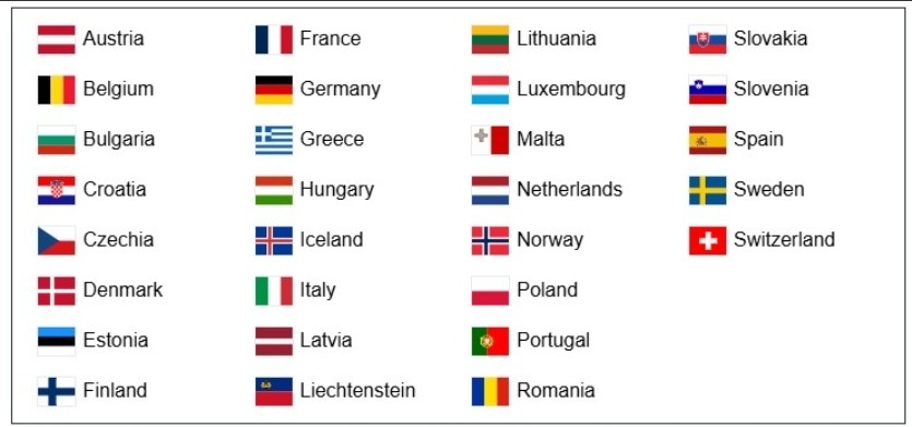 유럽 역내 자유로운 이동을 보장하는 솅겐 조약 29개국에서 시행된다. 독일의 경우 뒤셀도르프 공항에서 시작해 점차 확대하기로 하는 등 몇몇 주요 국가에서는 단계적으로 시행하다가 6개월 뒤인 내년 4월부터 전면 도입된다.