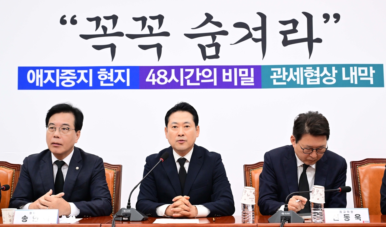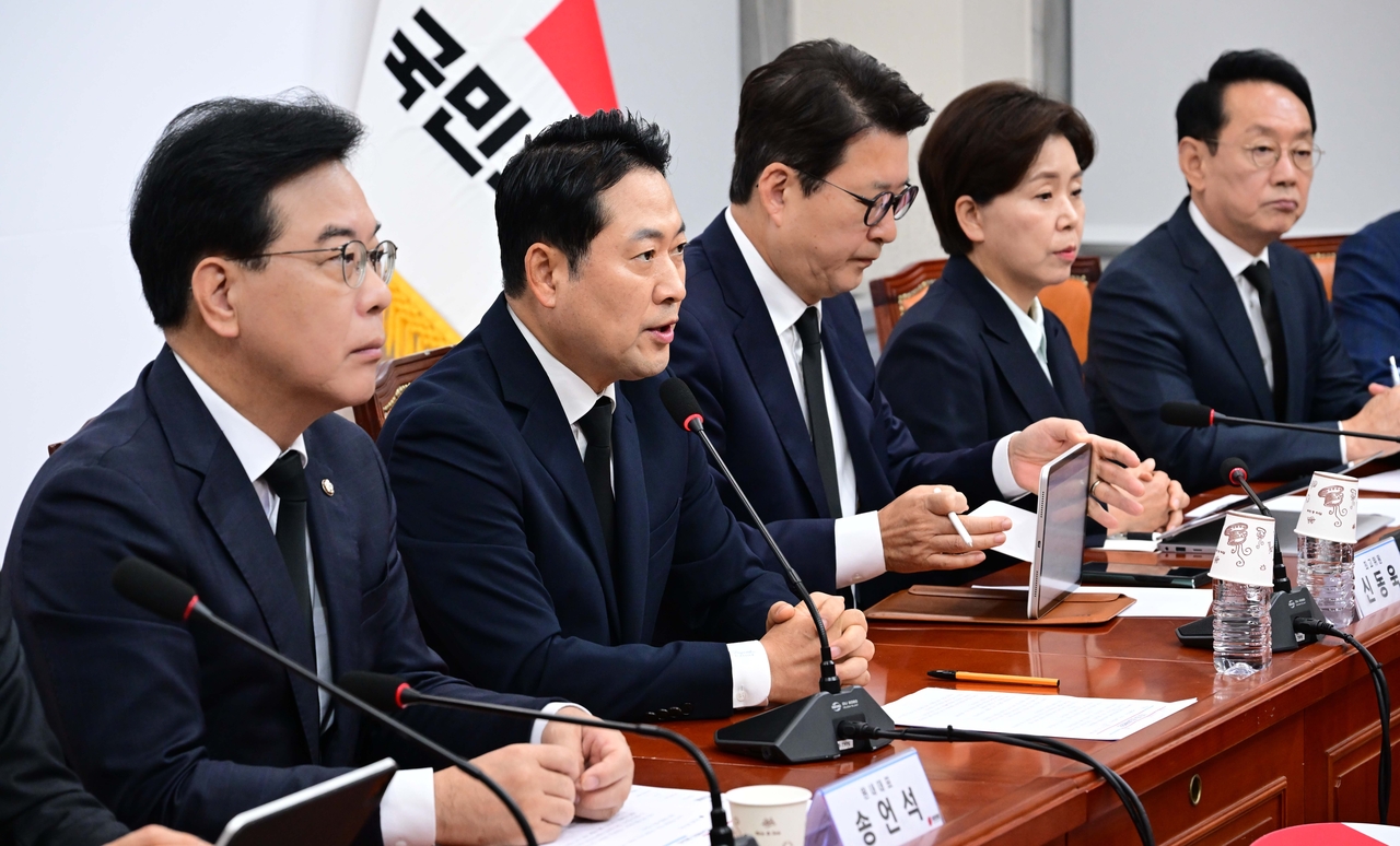 장동혁 국민의힘 대표는 이날 오전 국회에서 열린 최고위원회의에서 “국민의힘은 107명 전원이 밤샘 각오로 전력을 다해 국감에 임하겠다”며 이같이 말했다. 장 대표를 비롯해 회의에 참석한 최고위 구성원들은 사망한 공무원에 대한 조의 표시로 모두 검은색 정장과 넥타이를 맸다.