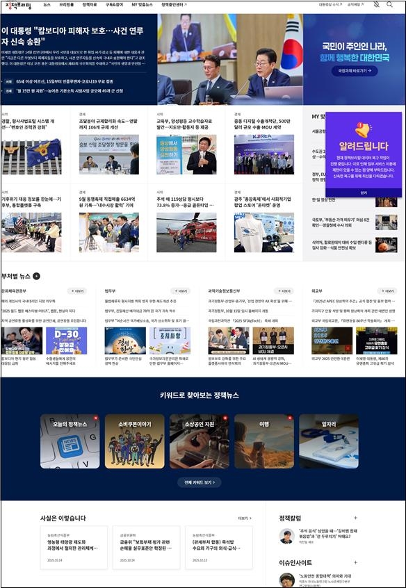 ‘정책브리핑’은 정책 관련 뉴스(정책 뉴스, 기고·칼럼)와 디지털 콘텐츠(영상, 카드뉴스 등), 브리핑룸(연설문, 보도자료 등) 등을 종합적으로 제공하는 정부의 공식 정책 정보 누리집이다. 문체부는 국정자원 화재 이후 정책브리핑 임시 사이트를 개설해 9월 29일 오전부터 각 부처의 보도자료를 게시판 형태로 제공했고, 국정자원과 함께 정책브리핑 시스템의 복구와 데이터 복원을 진행했다.