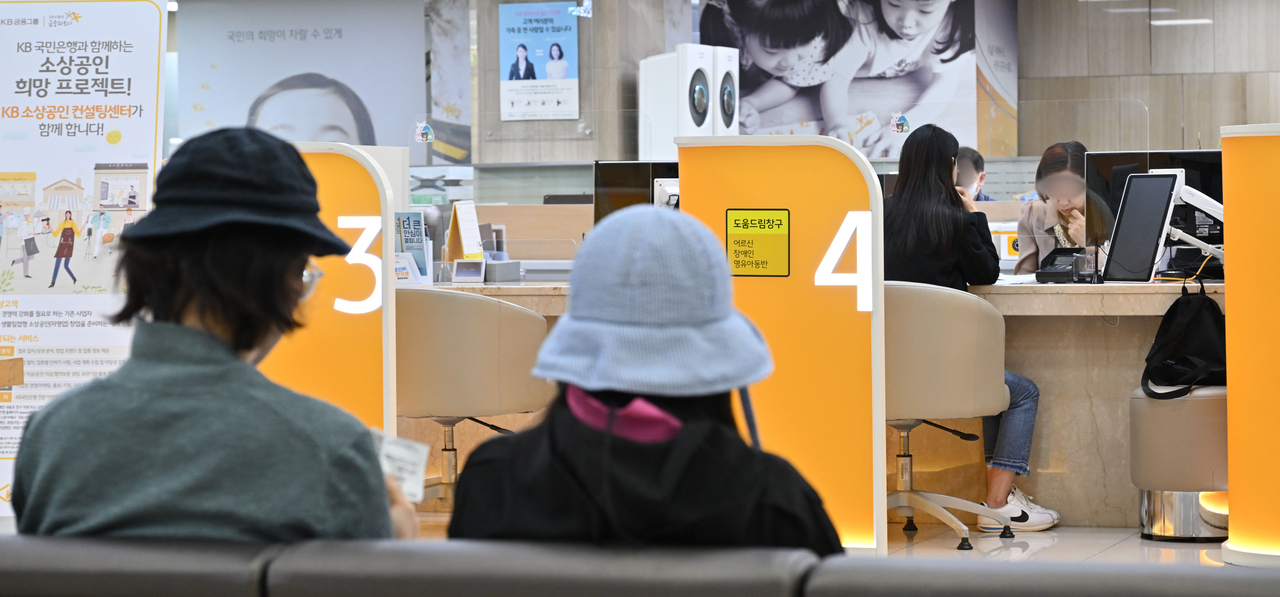 | 서울 여의도 시내의 한 은행을 찾은 고객들이 업무를 보고 있다. [헤럴드DB] |