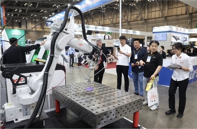 | 중소벤처기업부 등 3개 부처가 산업 전반의 AX 확산을 위한 업무협약을 체결했다. 사진은 지나 5월 열린 ‘제12회 부산국제기계대전(BUTECH 2025)’ 전시회 모습. [연합] |