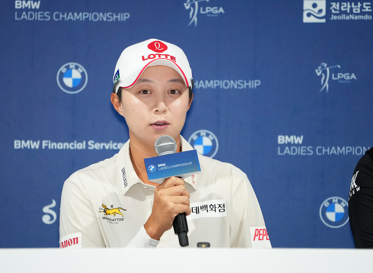 | 공식 기자회견 도중 기자들의 질문에 답하고 있는 김효주. [사진=대회 조직위원회 제공] |