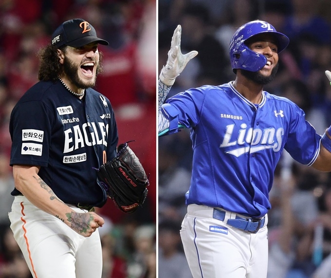 | 17일 프로야구 플레이오프 1차전 선발이 유력한 한화 코디 폰세(왼쪽)와 삼성 르윈 디아즈 [각 구단 제공] |