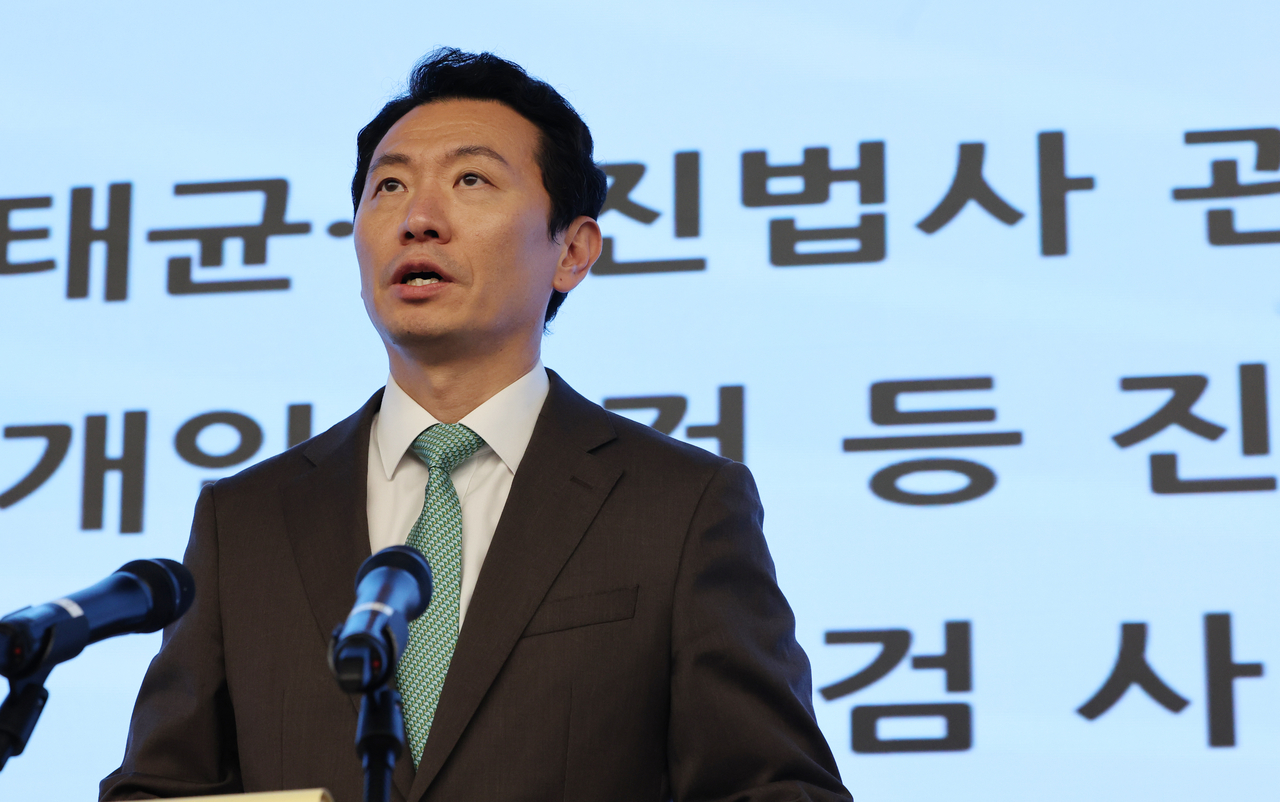 김건희 여사와 관련 의혹을 수사 중인 민중기 특별검사팀의 박상진 특검보가 서울 종로구 특검 사무실에서 브리핑을 하고 있다. [연합]