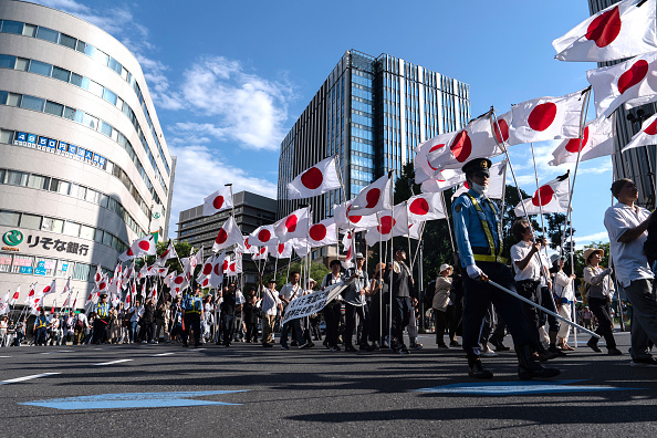 | 지난 8월 15일 일본 도쿄 야스쿠니 신사 인근 거리에서 제2차 세계 대전 종전 80주년 기념행사가 열리고 있는 모습. [게티이미지] |