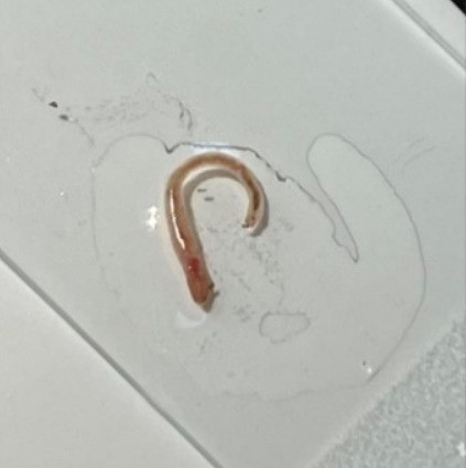 이후 의료진은 벌레를 포르말린에 고정해 현미경으로 관찰하던 중 벌레 표면에 강모 구조를 발견했다. 이 털 구조는 인간에게서 발견되는 기생충에는 없는 형태였다.