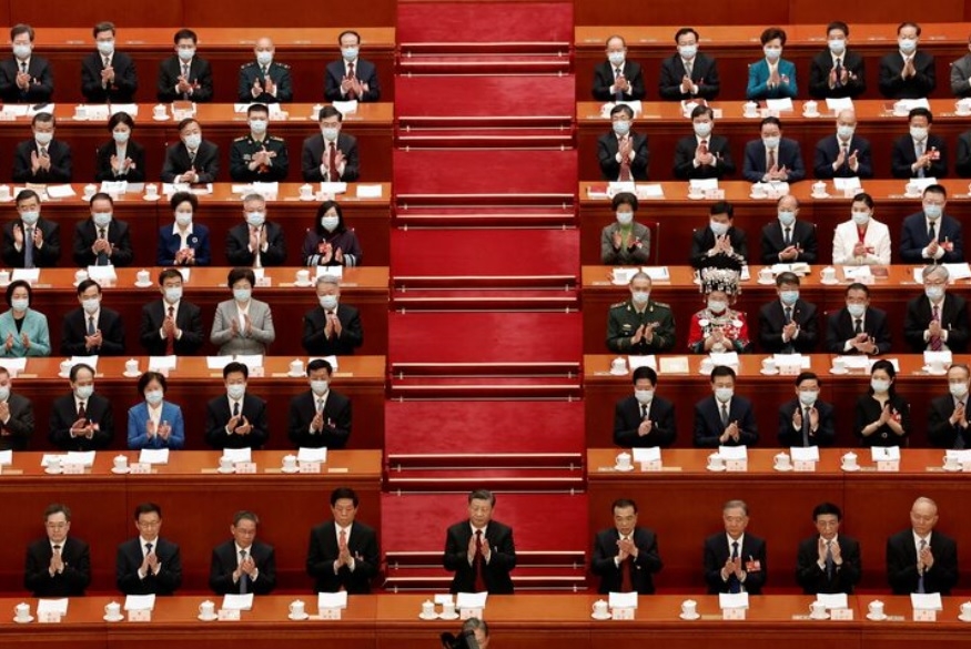| 지난 2023년 3월 중국 베이징 인민대회당에서 열린 전국인민대표대회(NPC) 개회식에서 시진핑 중국 국가주석과 다른 관계자들이 박수를 치고 있다. [로이터] |