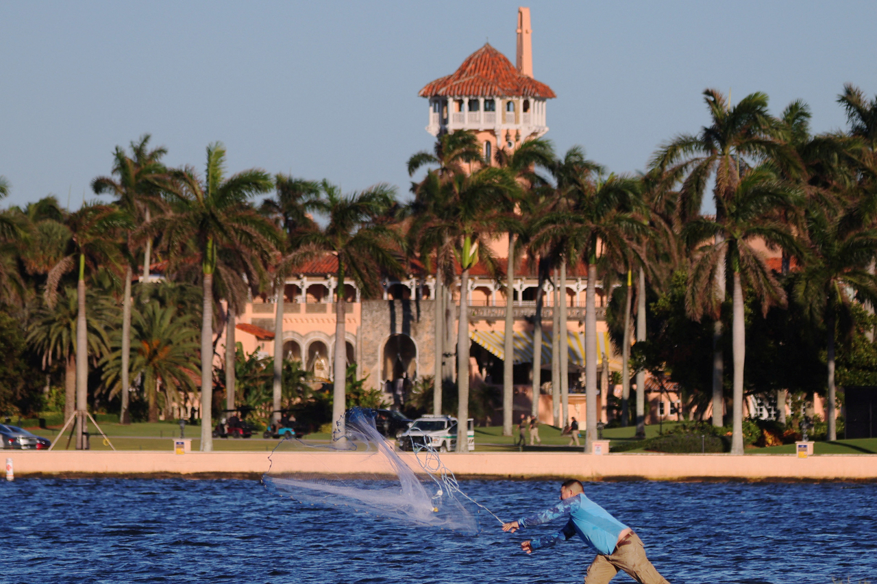 | 미국 플로리다주 팜비치의 마러라고 앞 바다에서 한 남성이 물고기를 잡고있다. [로이터] |