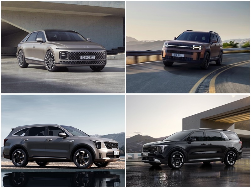 | 현대차 그랜저(위쪽 첫 번째부터 시계방향), 싼타페, 기아 카니발, 쏘렌토 [각사 제공] |