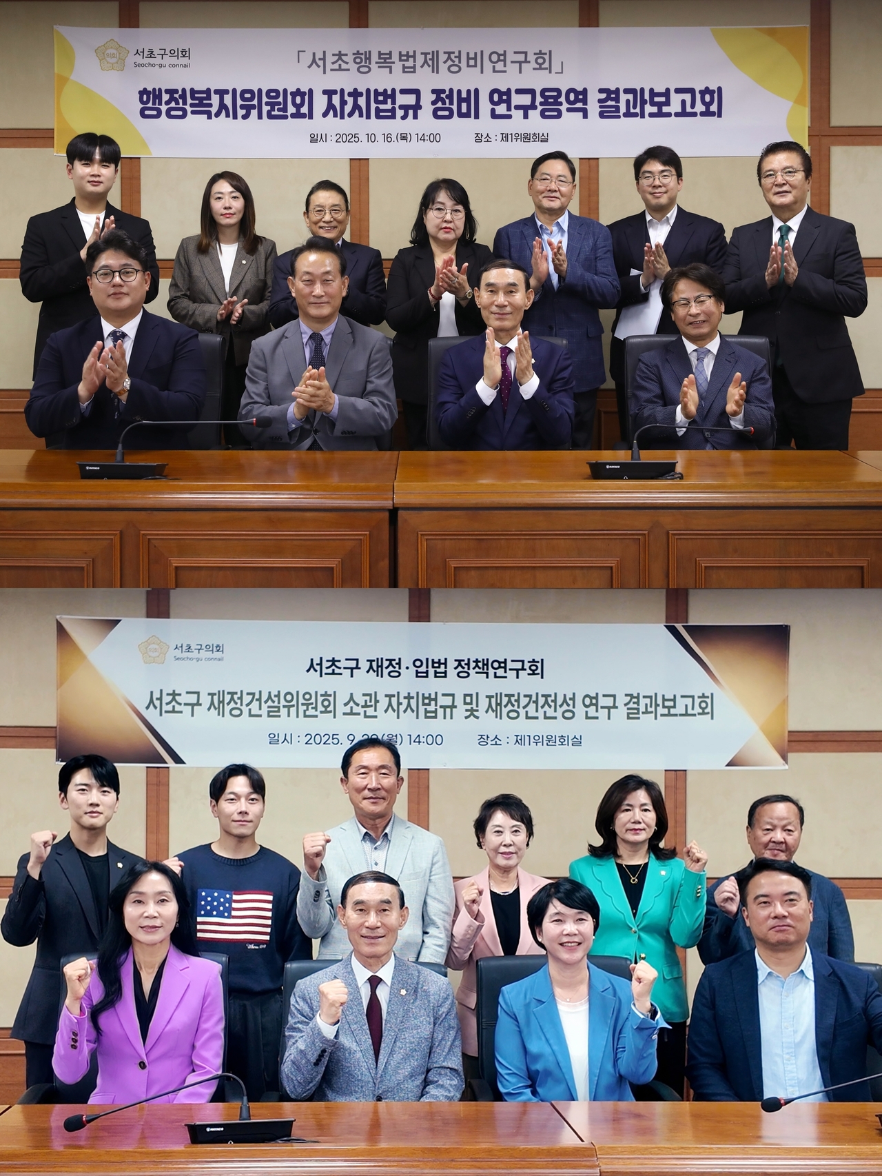의원 연구단체인 ‘서초구 재정·입법 정책연구회’와 ‘서초행복법제정비연구회’를 구성해 집행부의 재정·입법 문제를 함께 풀기 위한 연구에 착수했다.