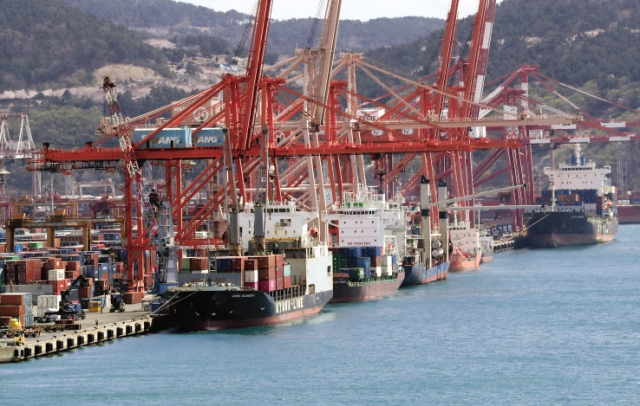 | 부산항 감만부두에서 컨테이너 하역작업이 진행되고 있다. [연합] |