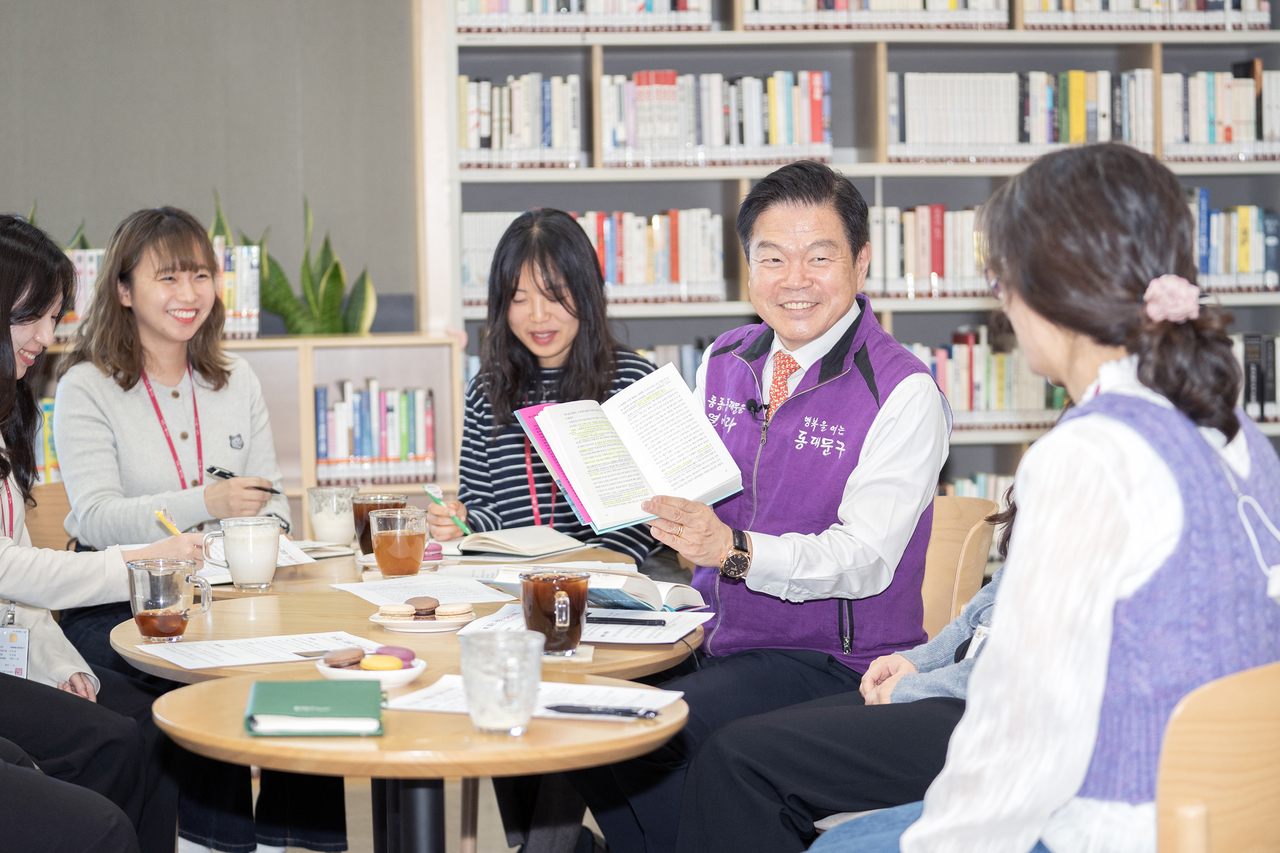 | 이필형 동대문구청장의 직원들과 독서 토론 …이 구청장은 벌써 4권의 책을 발간하고 다음달 5번째 책 발간을 앞두고 있는 등 애독자다. |
