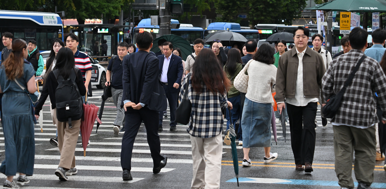 | 추석 연휴 뒤 첫 출근일인 10일 오전 서울 종로구 세종대로 사거리에서 시민들이 출근길을 서두르고 있다. 임세준 기자 |