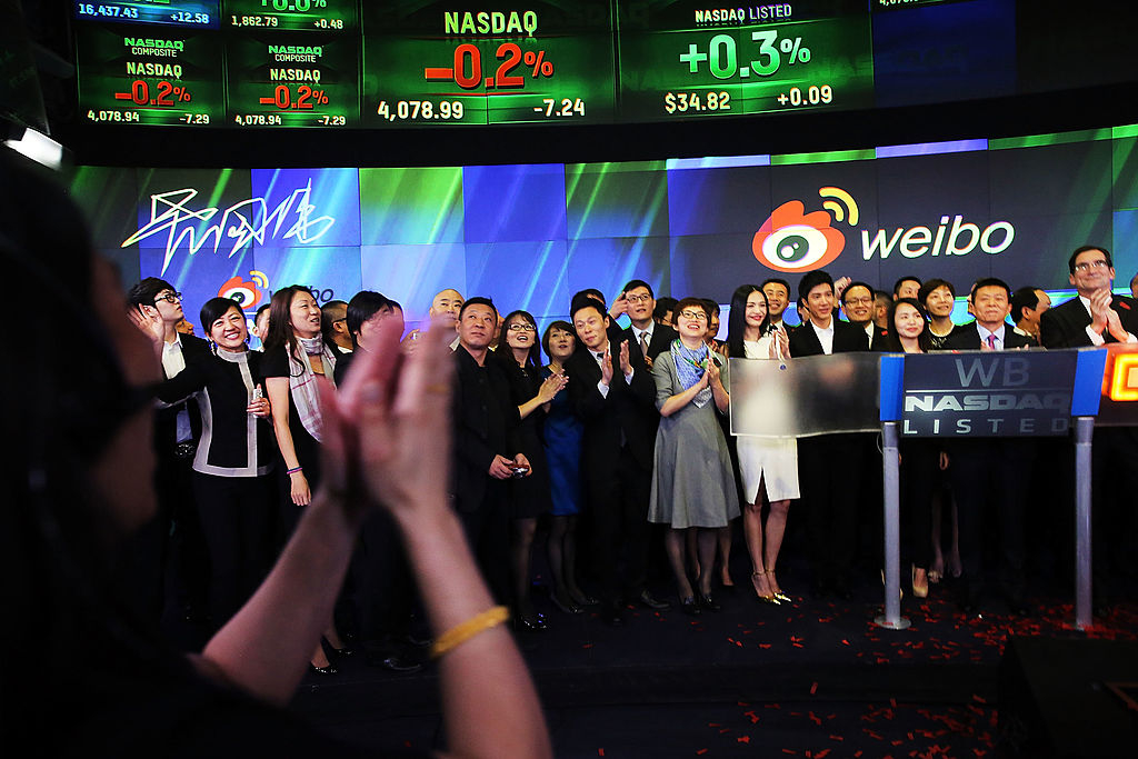 | 지난 2014년 4월 중국의 사회관계망 플랫폼 기업 웨이보가 미국 나스닥 증시에 상장했다. 미국에서는 중국과의 무역전쟁에 대한 대응책으로 미 증시에 상장한 중국 기업들의 퇴출 방안이 언급되고 있다.[게티이미지] |