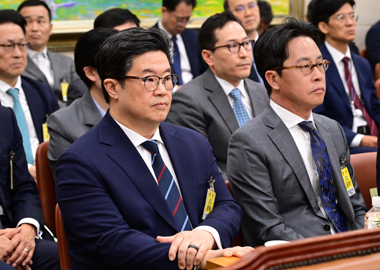 | 김병주 MBK파트너스 회장이 14일 서울 여의도 국회에서 열린 정무위원회의 공정거래위원회 등에 대한 국정감사에 증인으로 출석해 자리에 앉아 있다. 이상섭 기자 |