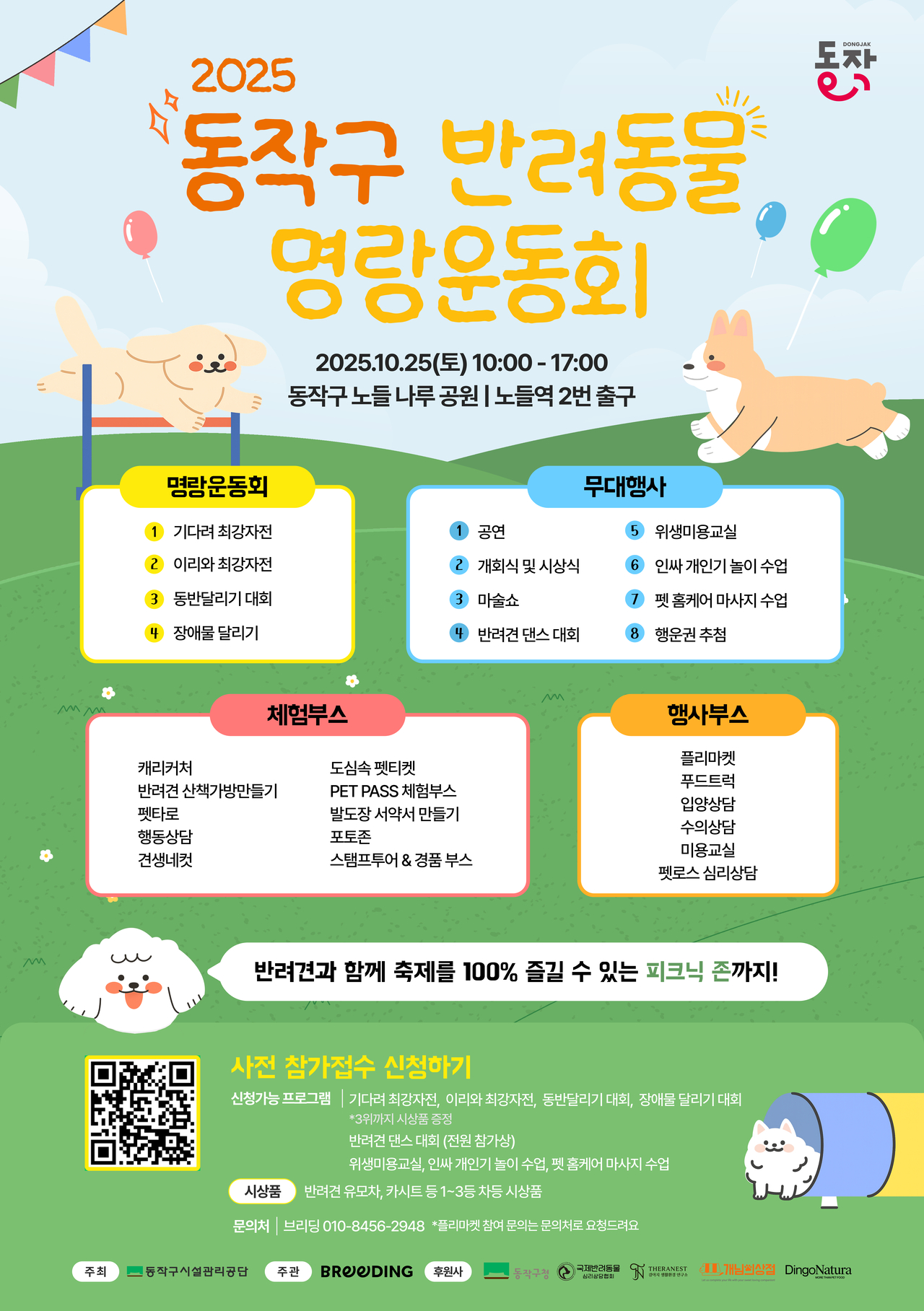 [헤럴드경제=박종일 선임기자] 동작구(구청장 박일하)가 25일 노들나루공원(노량진로 247)에서 ‘2025 반려동물 명랑운동회’를 개최한다.