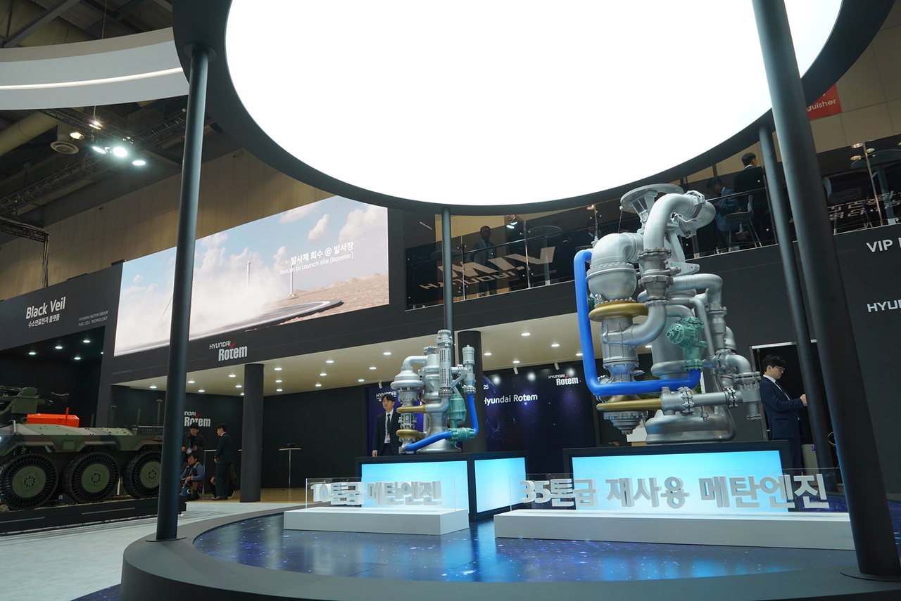 현대로템은 이번 전시회에서 메탄엔진, 덕티드 램제트 엔진, 극초음속 이중램제트 엔진 등 우주 발사체와 유도무기 등의 비행체에 탑재되는 항공우주 사업의 주요 제품들을 최초로 공개했다.