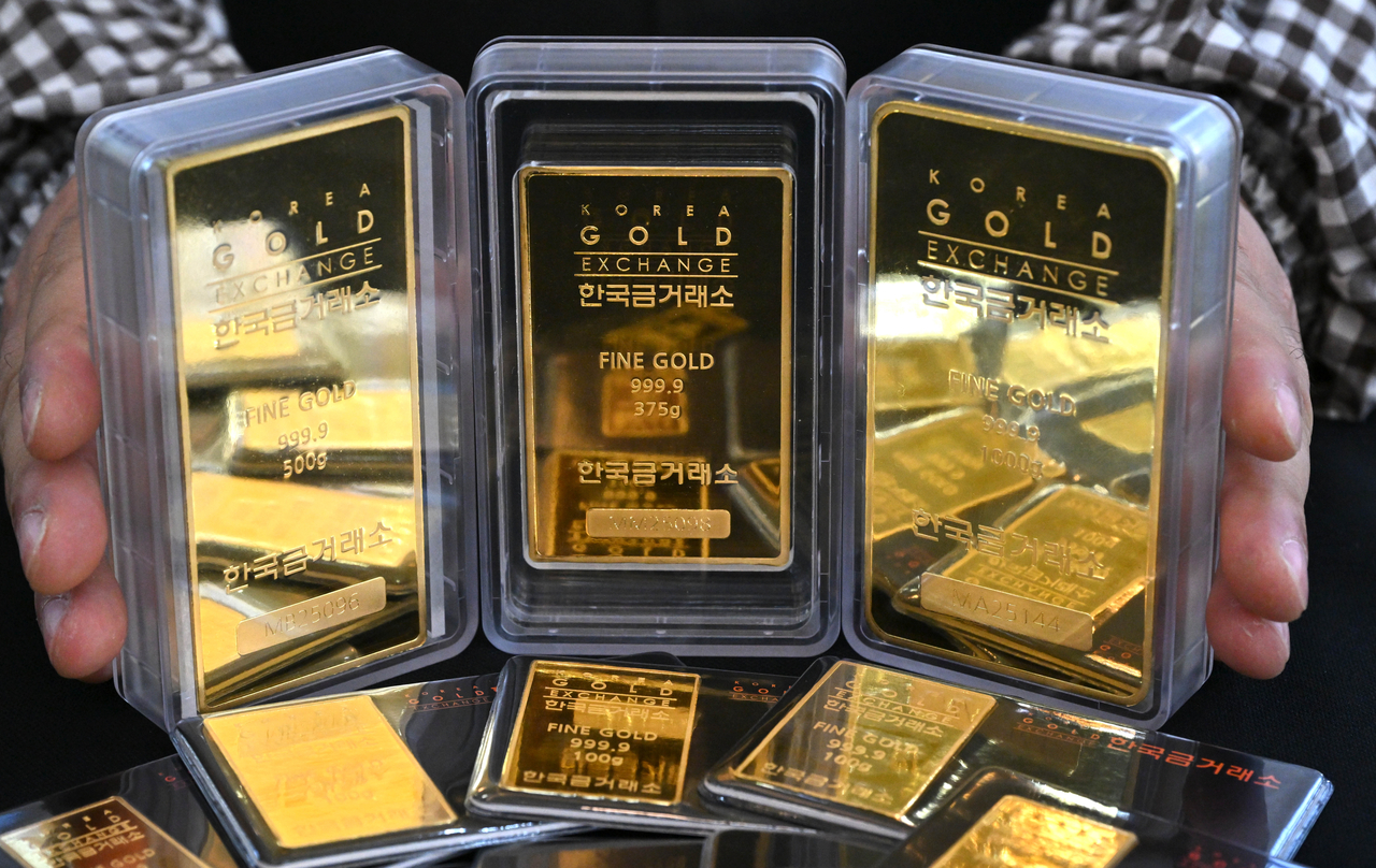 | 미국 도널드 트럼프 대통령의 상호관세 부과를 앞두고 안전자산 선호 현상이 높아지는 가운데 31일(현지시간) 미국 뉴욕시장에서 금 현물 가격 한 때 온스당 3160달러(약 466만 원)까지 오르며 또다시 최고치를 갱신했다. 1일 오전 서울 종로구 한국금거래소에서 직원이 골드바 제품을 선보이고 있다. 임세준 기자 |