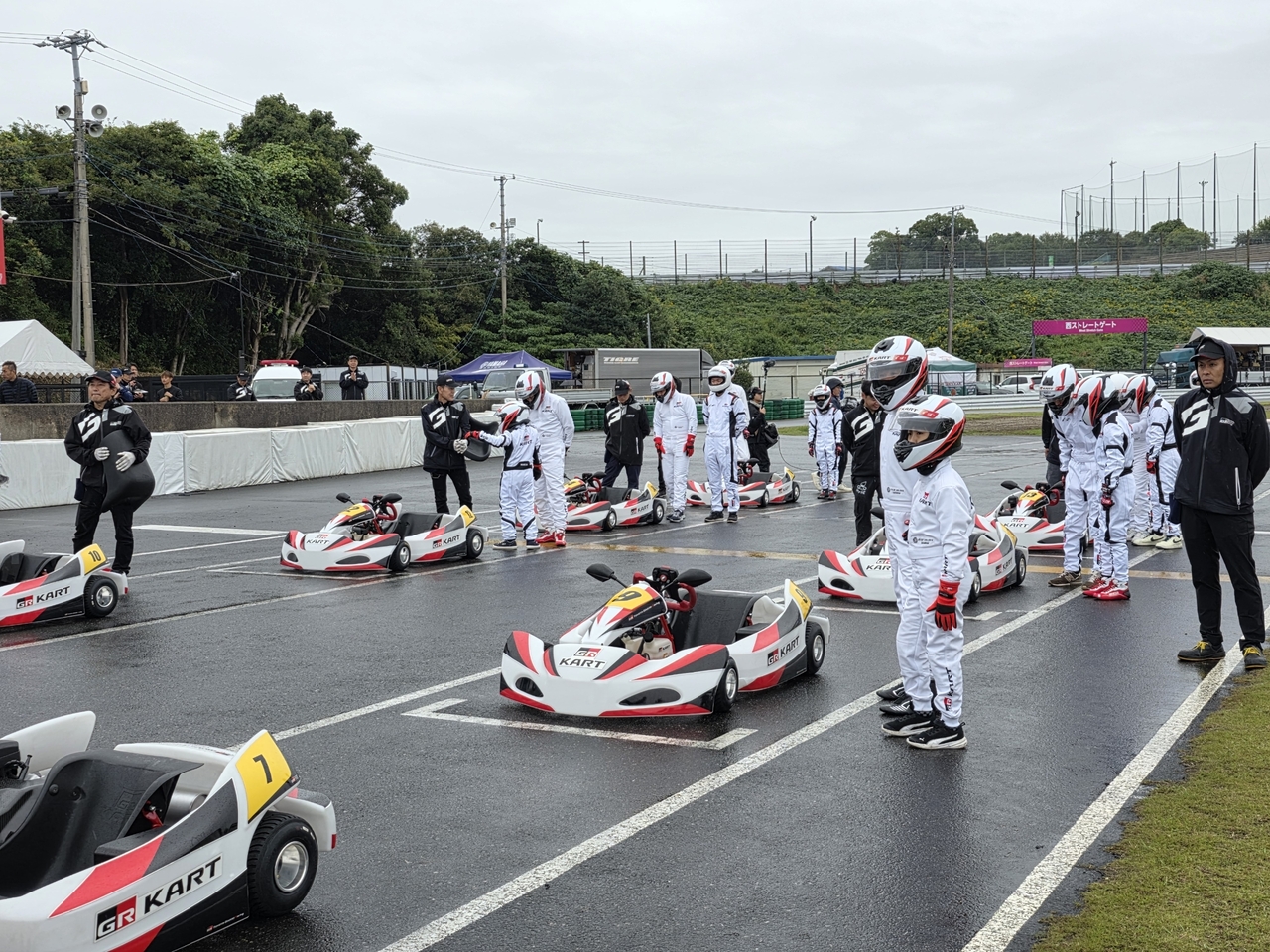 | 비가 내리는 가운데 토요타 GR 카트의 데모 레이스를 준비중인 일본의 레이서들. [사진=아이맥코리아 제공] |