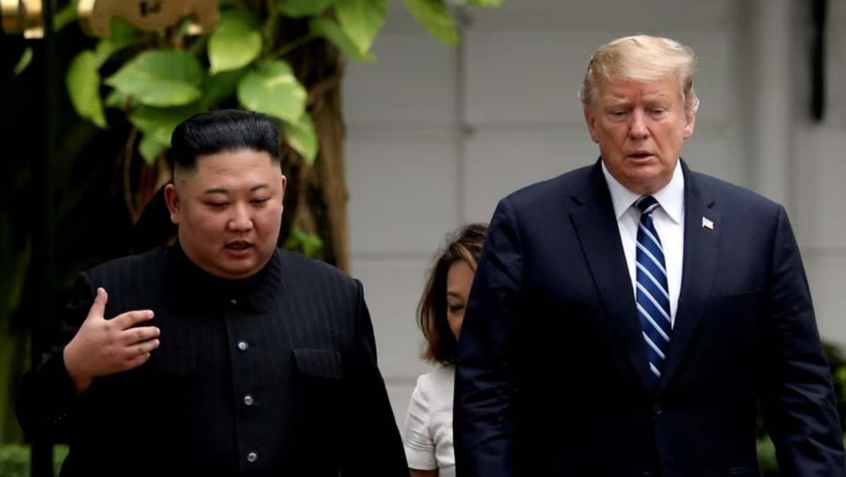 | 지난 2020년 베트남 하노이에서 열린 2차 미북 정상회담에서 도널드 트럼프 미국 대통령과 김정은 북한 국무위원장이 대화하고 있다.[로이터] |