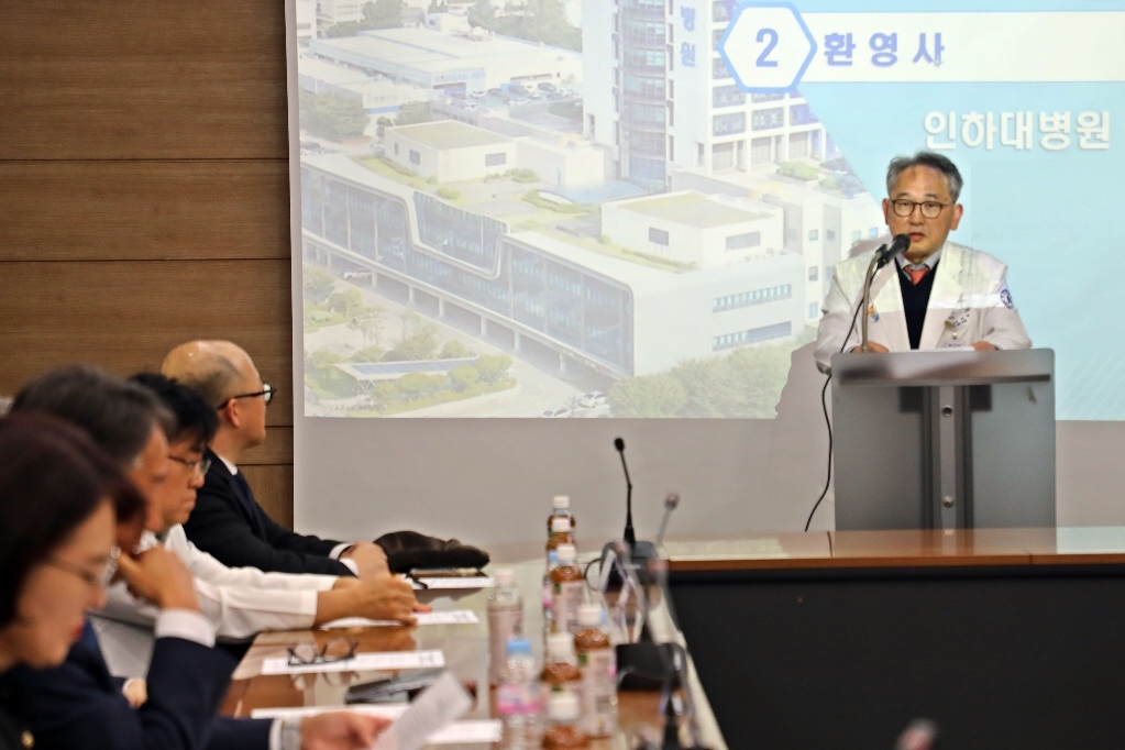| 이택 인하대학교 의료원장(인하대병원장)이 개방형실험실 개소식에서 환영사를 하고 있다. |