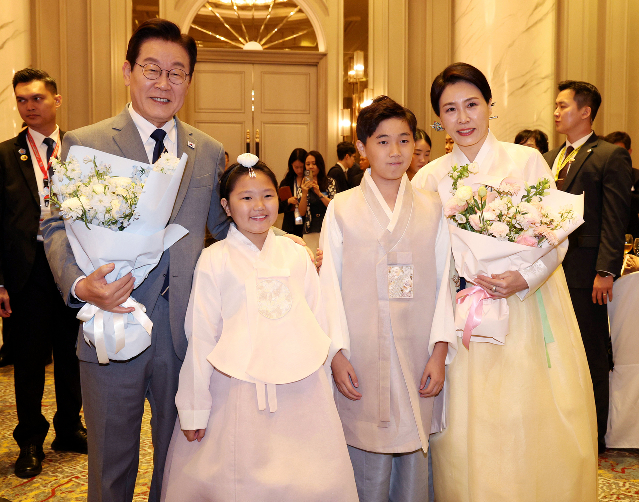 또한 조현 외교부 장관과 위성락 국가안보실장, 여한구 통상교섭본부장과 여승배 주말레이시아대사 내외 등이 참석했다. 이 대통령은 부인 김혜경 여사와 함께 참석했다. 김 여사는 흰 저고리에 노란색 치마를 두른 한복 차림으로 등장했다.