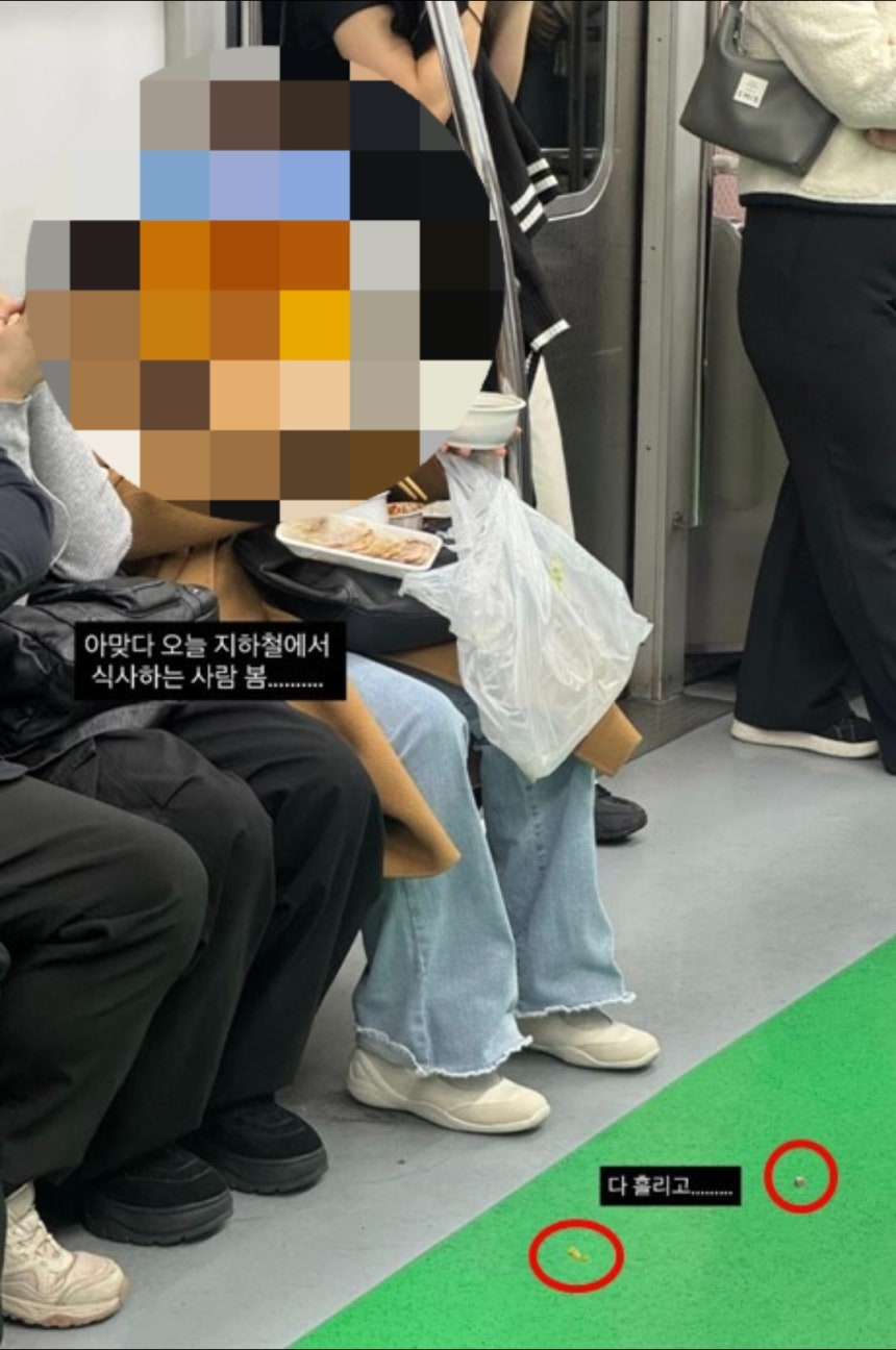최근 A씨는 SNS를 통해 “서울 지하철 2호선에서 식사하는 사람을 봤다. 보쌈에 국물에 김치까지 다 꺼내놓고 먹고 있었다”고 전하며 불쾌감을 드러냈다.