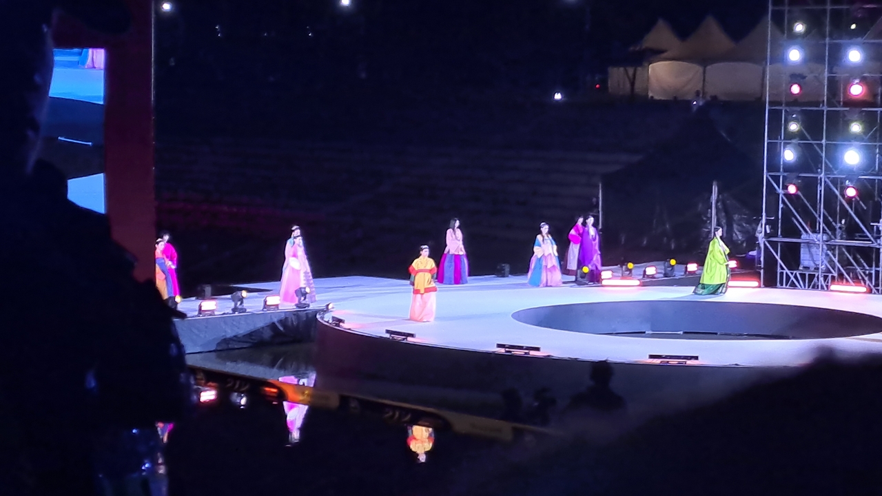 패션쇼 무대는 신라시대 왕궁과 교외를 잇던 관문인 월정교를 배경으로, 전통의 곡선미를 형상화한 ‘ㅎ자형 수상 런웨이’로 구성됐다.