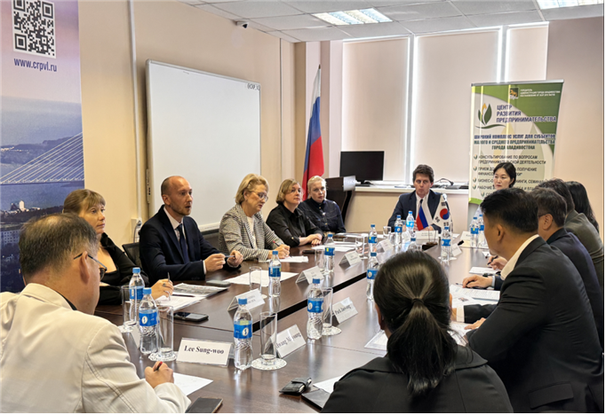 | 부산 물류개척단은 훈춘과 블라디보스토크를 방문해 주요 물류거점을 살펴보고 현지 관계자들과 협력 가능성을 논의했다. 사진은 ‘부산시-블라디보스토크시 공식 회의’ [부산시 제공] |