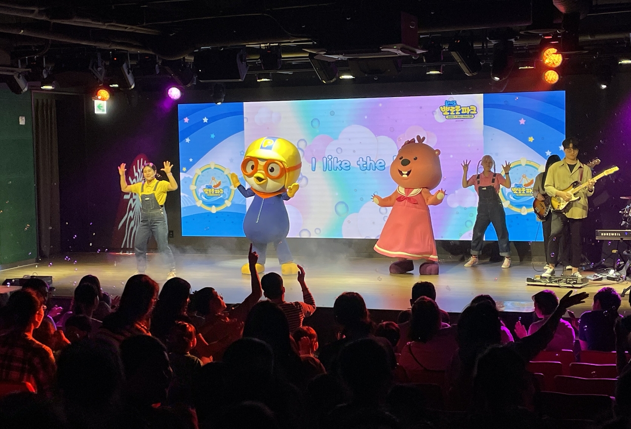 | 전국 뽀로로파크에서 열리는 ‘라이브 싱어롱쇼’의 한 장면. 화려한 마술쇼까지 더해져 인기가 많다. |