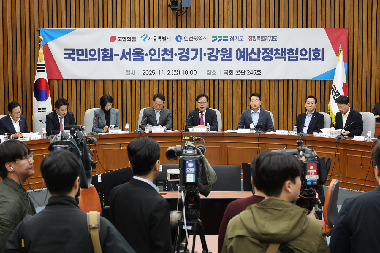 | 2일 국회에서 열린 국민의힘-서울·인천·경기·강원 지역 예산정책협의회에서 송언석 원내대표가 발언하고 있다. [연합] |