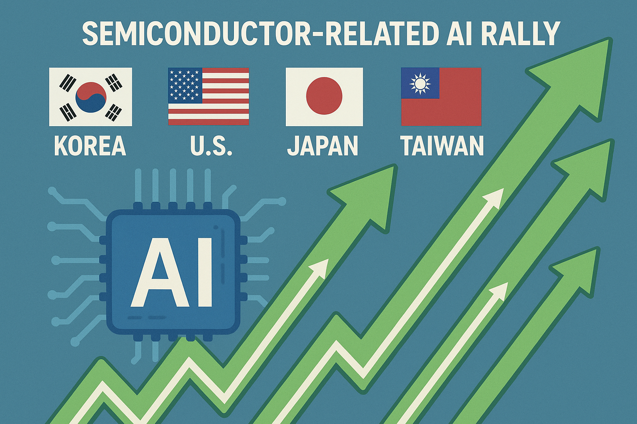 미국 증시에서도 AI 관련 빅테크(대형 기술주)가 대부분 산업 종목이 하락한 가운데서도 홀로 강세를 이어가며 전체 지수를 이끈 것도 투자자의 이목을 집중시켰다. 여기에 일본, 대만 증시 등도 AI 랠리에 올라탄 반도체 관련주가 지수 상승을 이끄는 모양새다.