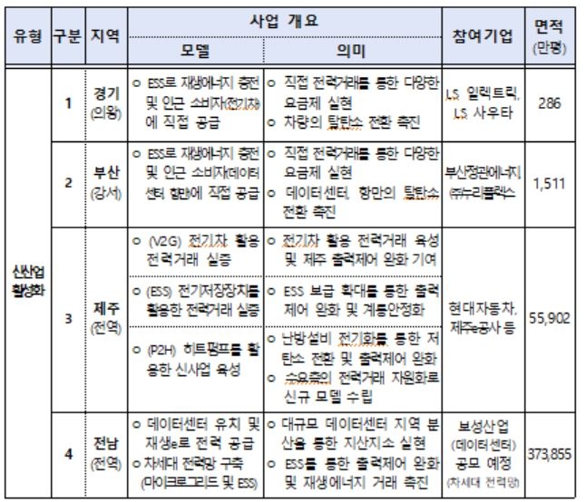 분산특구로 선정된 곳은 4곳으로 신산업활성화 유형 경기 의왕(LS일렉트릭), 부산 강서(부산정관에너지), 제주 전역(현대자동차 등), 전남 전역(보성산업) 등 4곳이다. 최종 후보지였던 수요 유치 유형은 울산 미포산단(SK MU)와 충남 서산(HD현대이앤에프)은 빠졌다. 또 신산업활성화 유형인 경북 포항도 선정되지 못했다.
