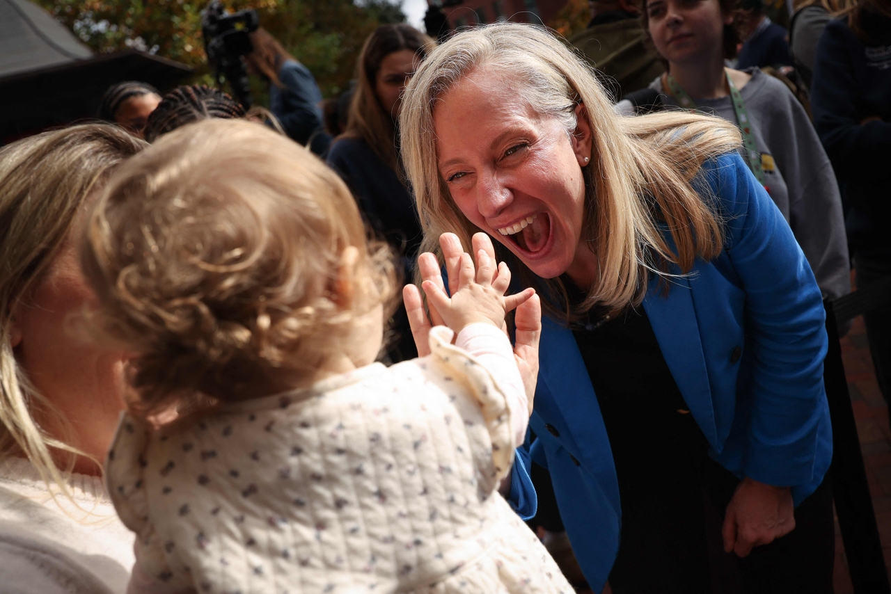 | 애비게일 스팬버거 버지니아 주지사 당선자가 지난 3일(현지시간) 버지니아주 커먼웰스 대학교에서 열린 집회에서 지지자들과 인사하고 있다. [AFP] |