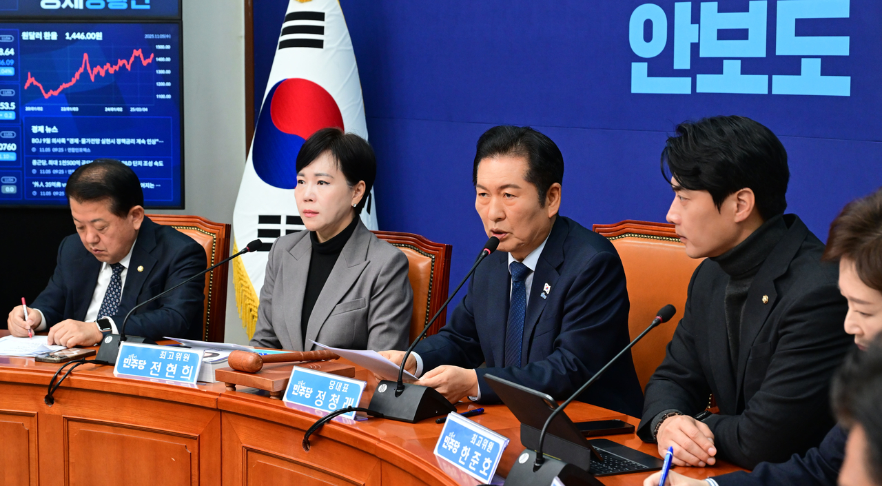 | 정청래 더불어민주당 대표가 5일 오전 서울 여의도 국회에서 열린 최고위원회의에 참석해 모두발언하고 있다. 이상섭 기자 |