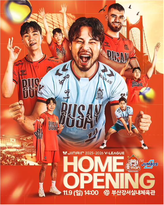 개막전 경기에 앞서 ▷오케이 읏맨 배구단 시즌 오프닝 영상 상영 ▷홈팀과 원정팀 선수단 소개 ▷부산시장의 개회선언 ▷박형준 시장, 최윤 구단주, 조원태 총재의 시구 등 행사가 진행된다.