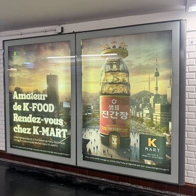 이번 광고는 프랑스 파리 중심가에 본점을 둔 한국 식품 전문 유통사 ‘K-MART’가 aT의 해외 판촉행사 지원을 받아 진행한 홍보 캠페인이다. 이번 광고는 프랑스 파리의 주요 상권인 1호선 ‘프랭클린 D. 루스벨트역(Franklin D. Roosevelt)’과 10호선 ’샤를 미셀역(Charles Michels)’에 게시됐다.