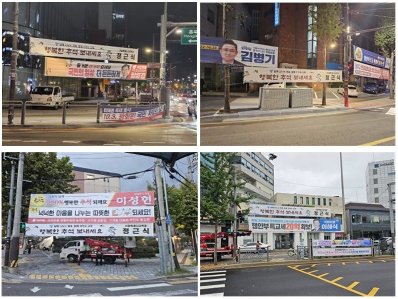 서울시교육청이 제출한 ‘최근 5년간 교육감 명절 현수막 게첩 현황’에 따르면 올해 추석 교육청은 ‘함께 나누는 마음, 함께 키우는 교육, 행복한 추석 보내세요. 서울특별시교육감 정근식’이라는 현수막을 서울시 내 34개소에 게첩한 것으로 나타났다. 예산은 약 800만 원 상당 소요됐으며, 예산 명목은 본예산에 편성됐던 ‘소모품 및 행사용품 구입비’로 지출됐다.